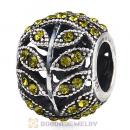 Sterling Silver Sparkling Leaves Bead with Olivine Austrian Crystal