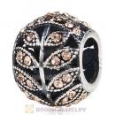 Sterling Silver Sparkling Leaves Bead with Light Peach Austrian Crystal