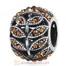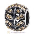 Sterling Silver Sparkling Leaves Bead with Light Colorado Topaz Austrian Crystal