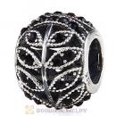 Sterling Silver Sparkling Leaves Bead with Jet Austrian Crystal