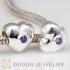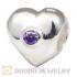 European Style Silver Heart Beads Gold Plated Circle with Purple Stone