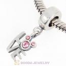 Sterling Silver Locks of Love Charm with Light Rose Austrian Crystal