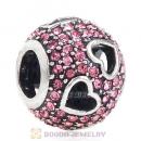 Sterling Silver Tumbling Hearts Charm with Light Rose Austrian Crystal