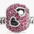 Sterling Silver Tumbling Hearts Charm with Light Rose Austrian Crystal