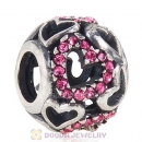 Sterling Silver love Hearts Charm with Light Rose Heart Austrian Crystal