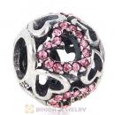 Sterling Silver love Hearts Charm with Light Rose Heart Austrian Crystal