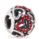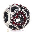 Sterling Silver love Hearts Charm with Light Siam Heart Austrian Crystal
