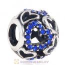 Sterling Silver love Hearts Charm with Blue Zircon Heart Austrian Crystal