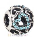Sterling Silver love Hearts Charm with Aquamarine Heart Austrian Crystal