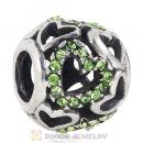 Sterling Silver love Hearts Charm with Peridot Heart Austrian Crystal