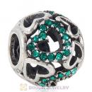 Sterling Silver love Hearts Charm with Emerald Heart Austrian Crystal