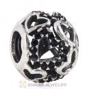 Sterling Silver love Hearts Charm with Jet Heart Austrian Crystal