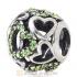 Sterling Silver love Hearts Charm with Emerald Heart Austrian Crystal