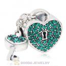 Sterling Silver Locks of Love Charm with Emerald Austrian Crystal