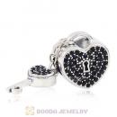 Sterling Silver Locks of Love Charm with Jet Austrian Crystal