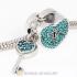 Sterling Silver Locks of Love Charm with Aquamarine Austrian Crystal