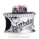 Sterling Silver Happy Birthday Cake Charm Beads with Light Siam Austrian Crystal Wholesale