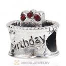 Sterling Silver Happy Birthday Cake Charm Beads with Light Siam Austrian Crystal Wholesale