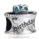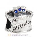 Sterling Silver Birthday Cake Charm Beads with Blue Zircon Austrian Crystal Wholesale