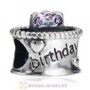 Sterling Silver Birthday Cake Charm Beads with Violet Austrian Crystal Wholesale