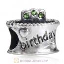 Sterling Silver Birthday Cake Charm Beads with Peridot Austrian Crystal Wholesale