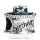 Sterling Silver Birthday Cake Charm Beads with Emerald Austrian Crystal Wholesale