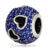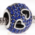 Sterling Silver Tumbling Hearts Charm with Blue Zircon Austrian Crystal