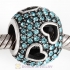 Sterling Silver Tumbling Hearts Charm with Blue Zircon Austrian Crystal