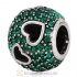 Sterling Silver Tumbling Hearts Charm with Peridot Austrian Crystal