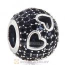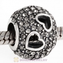 Sterling Silver Tumbling Hearts Charm with Jet Austrian Crystal