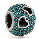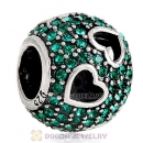 Sterling Silver Tumbling Hearts Charm with Emerald Austrian Crystal
