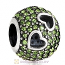 Sterling Silver Tumbling Hearts Charm with Peridot Austrian Crystal