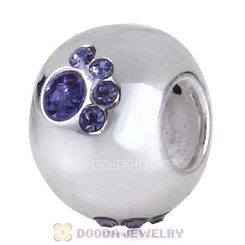 Sterling Silver Dog Paw Prints Beads With Blue Zircon Austrian Crystal