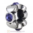 European Sterling Silver Heart Spacer Beads with Tanzanite Austrian Crystal