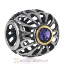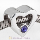 Sterling Silver European Heart Beads with Tanzanite Austrian Crystal