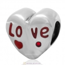 Love Enamle Charm Sterling Silver Heart Bead with Light Siam Australian Crystal