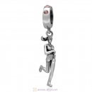 Sterling Silver Lady Runner Dangling Bead with Clear Austrian Crystal
