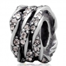 European Antique Sterling Silver Charm Bead with Pave Clear Australian Crystal