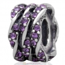 European Antique Sterling Silver Charm Bead with Pave Violet Australian Crystal