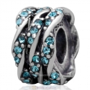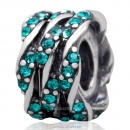 European Antique Sterling Silver Charm Bead with Pave Blue Zircon Australian Crystal