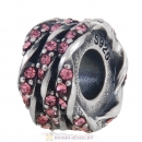 European Antique Sterling Silver Charm Bead with Pave Lt Rose Australian Crystal