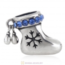925 Sterling Silver Charm Christmas Stocking Bead with Sapphire Austrian Crystal