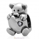 Bear Hug Heart Charm 925 Sterling Silver with Clear Austrian Crystal