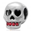 Terrible Skull Charm 925 Sterling Silver Bead with Bling Lt Siam Austrian Crystal