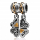925 Sterling Silver Wife Husband Clear Crystal Clover Dangle Bead Charm