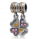 925 Sterling Silver Mother Son Lt Rose Crystal Clover Dangle Bead Charm