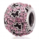 Fluttering Butterflies Charm 925 Sterling Silver Bead with Lt Rose Pave Australian Crystal