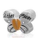 1 Pair Sterling Silver Gold Plated Mother Daughter Butterfly Bead with Clear Austrian Crystal