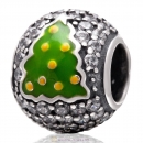 925 Sterling Silver Christmas Tree Charm Bead with Clear Zircon Stones