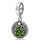 925 Sterling Silver Dangle Christmas Tree Charm with Clear Zircon Stones